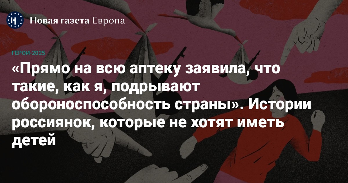 — Если раньше люди в массе своей не знали термина «чайлдфри», то теперь узнали, — говорит Наталья. — И он у них стойко ассоциируется с такими вещами, как ЛГБТ, пропаганда Запада и прочие страшные вещи, которые могут нанести нашему государству какой-то вред. Сам термин, если употреблять его в диалоге, вызывает у людей теперь максимально негативную реакцию. Если раньше на тех, кто не хочет детей, смотрели просто как на странных чудиков, то сейчас появилась такая риторика, что эти люди — враги государства, они проплачены Западом, они желают плохого стране. Например, моя бывшая подруга твердо уверена, что существует пропаганда ЛГБТ, пропаганда чайлдфри, и это всё не просто так. А государство, конечно же, должно себя защищать и эти вещи как-то регулировать.