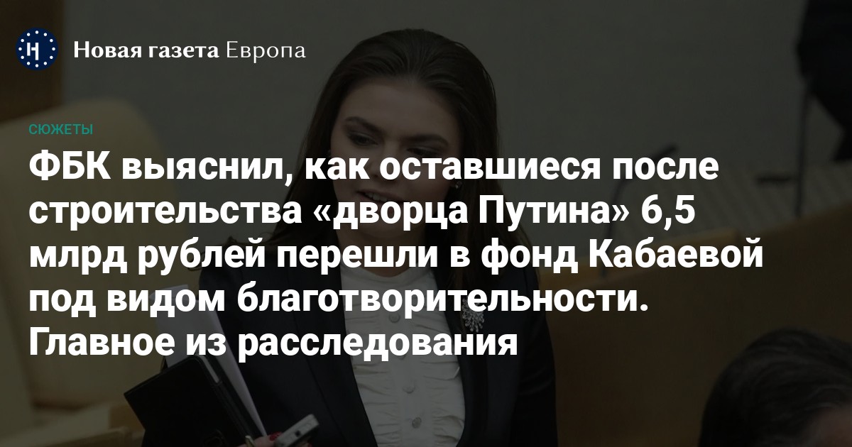 ФБК выяснил, как оставшиеся после строительства «дворца Путина» 6,5 млрд рублей перешли в фонд Кабаевой под видом благотворительности