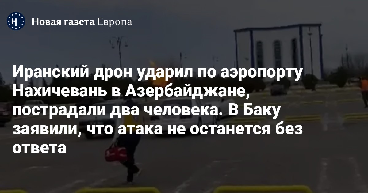 Иранский беспилотник ударил по терминалу аэропорта Нахичевань в Азербайджане. Об этом сообщили азербайджанские медиа APA, Trend и 1NEWS, позднее информацию подтвердили в МИД республики.