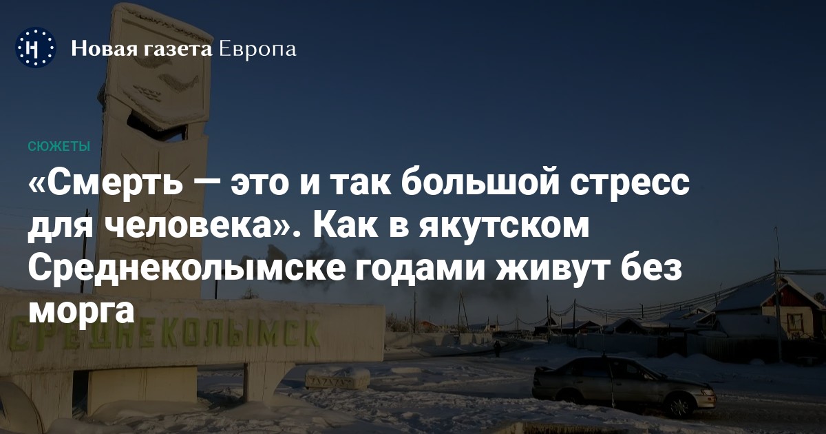 В якутском городе Среднеколымск во время публичного отчета правительства республики жители пожаловались на отсутствие морга. Они рассказали журналистам регионального издания SakhaDay, что власти отчитались о проделанной за год работе, показывая жизнь в городе, «как будто в Арабских Эмиратах», хотя по факту проблемы не решаются много лет. Одна из таких — в Среднеколымске отсутствует морг как отдельное специализированное учреждение или оборудованное помещение. По словам жителей, в случае смерти человека тела временно размещаются в подвальном помещении медицинского учреждения до прибытия криминалистов. При этом говорят, что трупы держат по соседству с продуктами питания, которые завозят предприниматели.