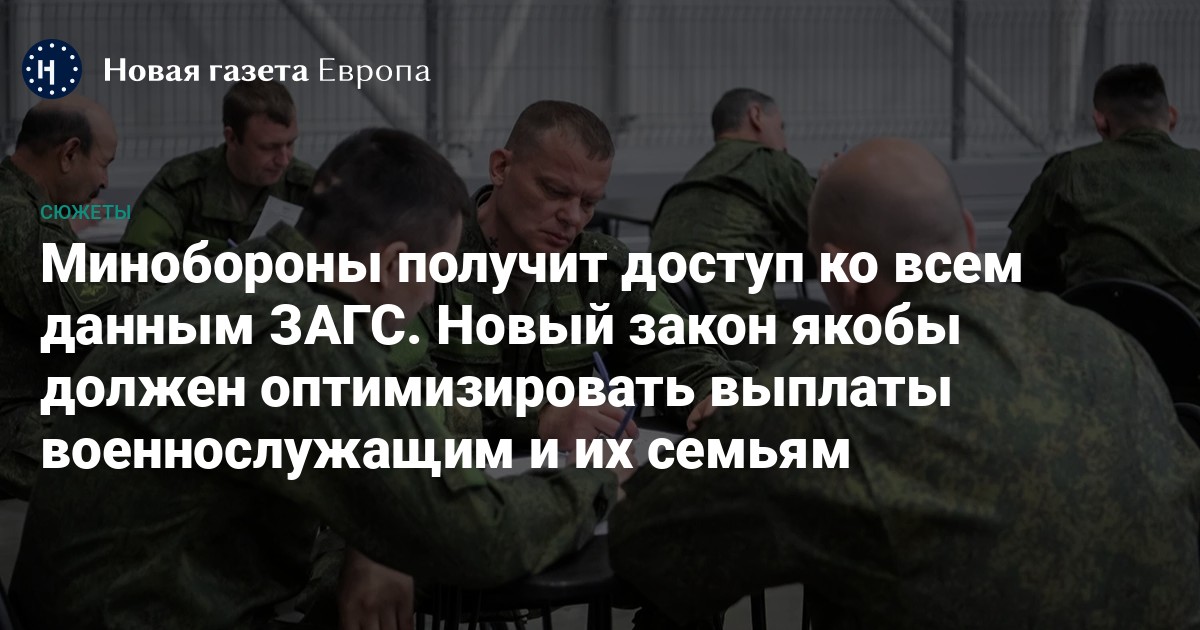 Министерству обороны дадут право получать все сведения из единого государственного реестра ЗАГС. Власти объясняют инициативу необходимостью упростить предоставление социальных выплат военнослужащим и их семьям, однако эти изменения происходят на фоне и так ужесточающихся правил призыва и его оспаривания в суде. Подробнее о последних нововведениях для призывников — в материале «Новой газеты Европа».