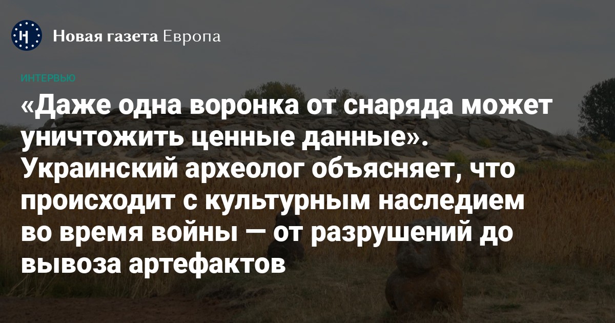 — Любая человеческая деятельность, связанная с использованием земли, неизбежно влияет на археологическое наследие. В то время как строительство дорог или плотин обычно сопровождается превентивными раскопками (например, на Мариупольском кладбище перед строительством «Азовстали» в 1930-х годах), война игнорирует такие меры. Военные операции и строительство укреплений — основные причины разрушения наследия.