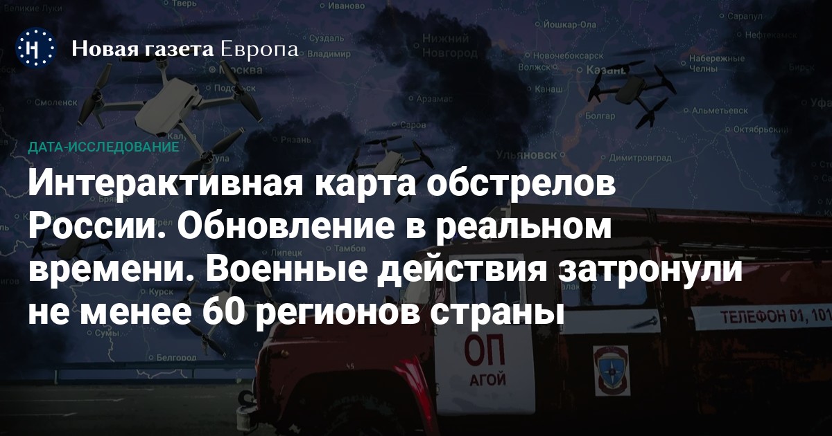 С каждым годом война распространяется по России — число атак беспилотников растет, дроны и ракеты долетают до все большего числа регионов. «Новая-Европа» составила карту военных инцидентов на территории страны с 2022 года. Она обновляется каждые 15 минут и ее можно использовать, чтобы следить за атаками в реальном времени.